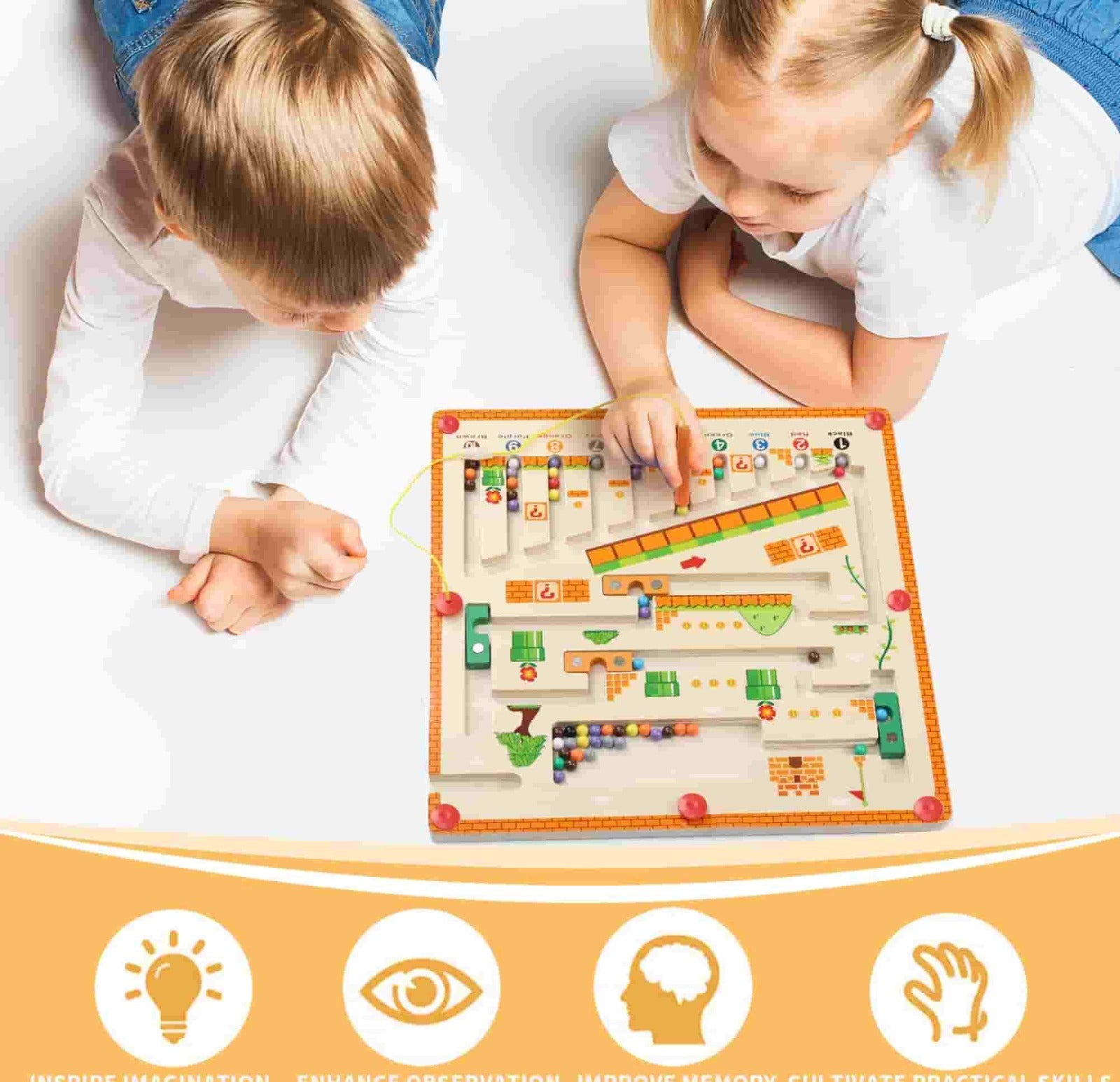 Utilice una varita magnética para guiar las bolitas a través del laberinto, colocándolas en el tubo de su color correspondiente. No solo es entretenido, sino también desafiante: ¡requiere concentración y precisión para completar el recorrido !